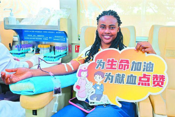 4月20日,来自加纳的留学生格里夫(中文名)志愿献血